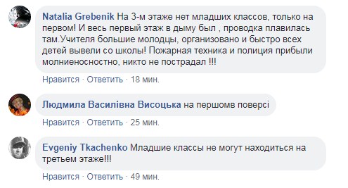 В то же время пользователи сети заявили, что возгорание произошло на первом этаже. "На 3-м этаже нет младших классов, только на первом! И весь первый этаж в дыму был, проводка плавилась там. Учителя большие молодцы, организовано и быстро всех детей вывели со школы! Пожарная техника и полиция прибыли молниеносно, никто не пострадал", - пишут в сети.