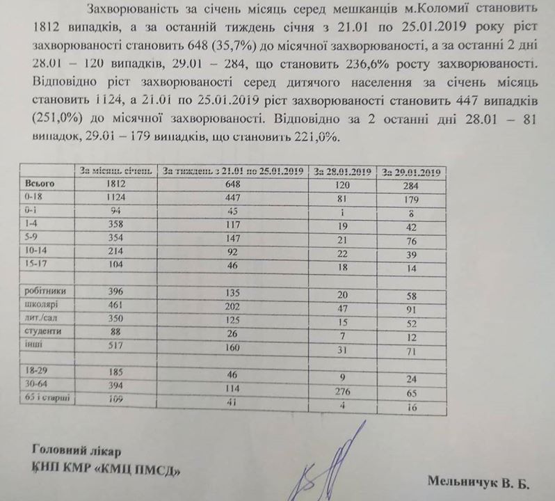 Отметим, что за январь этого года года в Коломые гриппом и ОРВИ заболели 1812 человек. Вчера, 29 января с температурой слегли 284 человека, из них 91 школьник.