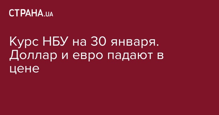 Курс НБУ на 30 января. Доллар и евро падают в цене
