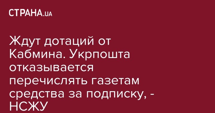 "Из неофициальных источников нам стало известно, что наша редакция, как и другие, не получили подписных средств от "Укрпошты", мы стали заложниками воли генерального директора этого учреждения в связи с отсутствием компенсационных выплат правительства по доставке пенсий", - заявил НСЖУ главный редактор газеты "Город вечернее" (Волынская область) Эдуард Залуский.