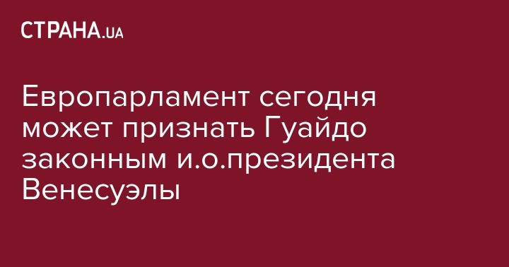 Европарламент подготовил проект резолюции о признании лидера оппозиции Хуана Гуайдо законным и.о. президента Венесуэлы до проведения "новых свободных и прозрачных выборов". Текст проекта резолюции опубликован на сайте Европарламента (ЕП).