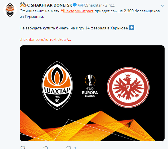 Жаркий февраль Лиги Европы. На игру с Шахтером в Харьков едут тысячи фанов Айнтрахта