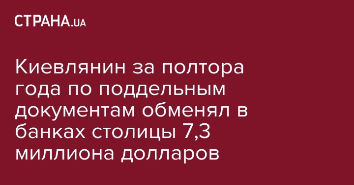 Обвинительный акт касаемо 49-летнего нарушителя уже направлен в суд. Его подозревают в том, что он совершал незаконные действия с документами, чтобы обменять деньги. На протяжении 1,5 года мужчина в разных банках Киева обменял почти 7,3 миллиона долларов наличными, при этом в каждом банке в качестве документа, подтверждающего источник денег, он использовал oдин и тот же поддельный договор банковского депозита.