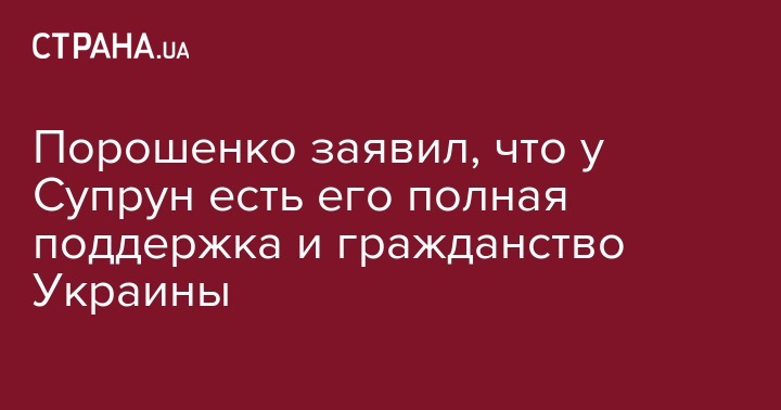Также Порошенко заявил, что отстраненная от должности судом и.о. министра здравоохранения Уляна Супрун является гражданкой Украины. Он заявил, что гражданство ей было предоставлено его указом.