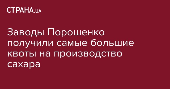 В Минагропроде выдали наибольшие квоты на производство сахара для внутреннего рынка заводам, которыми владеет Петр Порошенко, сообщает "Дело" ссылаясь на приказ Минагропрода.