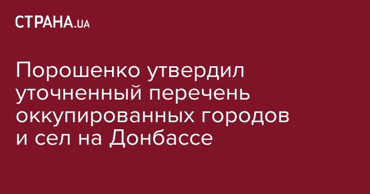 Президент Украины Петр Порошенко официально утвердил уточненный перечень оккупированных населенных пунктов. Об этом говорится в его указе №32/19.