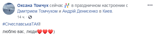 "У "Ленинграда" хорошая песня есть - ехай на ***", - написала она. Сама Томчук отметила переименование области фотографией распития спиртных напитков и надписью "#СічеславськаТАК!".