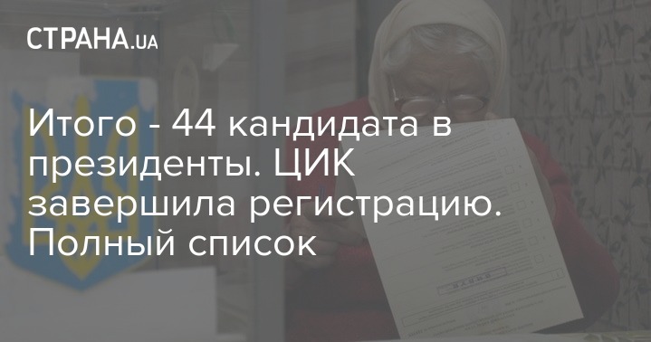 ЦИк завершила регистрацию кандидатов в президенты Украины на выборах, которые состоятся 31 марта. Их количество установило рекорд за всю историю - 44 человека.
