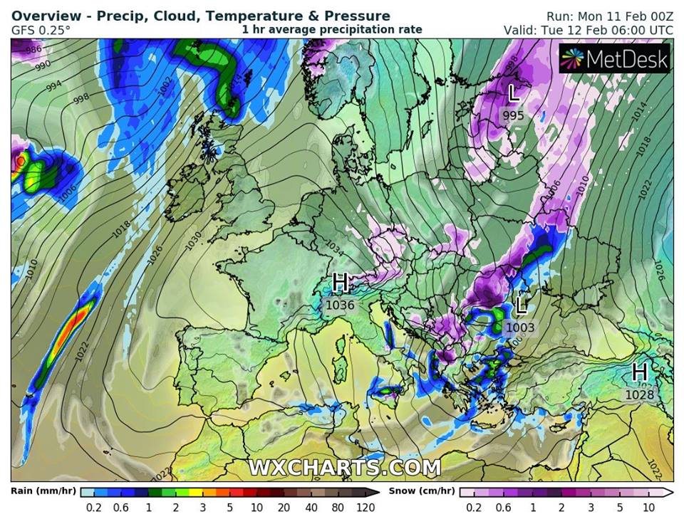 Во вторник, 12 февраля, в Украине ожидаются сложные погодные условия - дожди, мокрый снег, налипание мокрого снега, сильный порывистый ветер. Об этом сообщила синоптик Наталья Диденко на странице в Facebook.