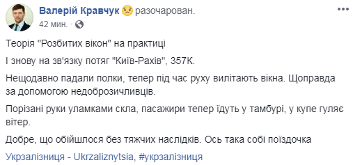 Об этом сообщил один из пассажиров поезда киевский преподаватель Валерий Кравчук.
