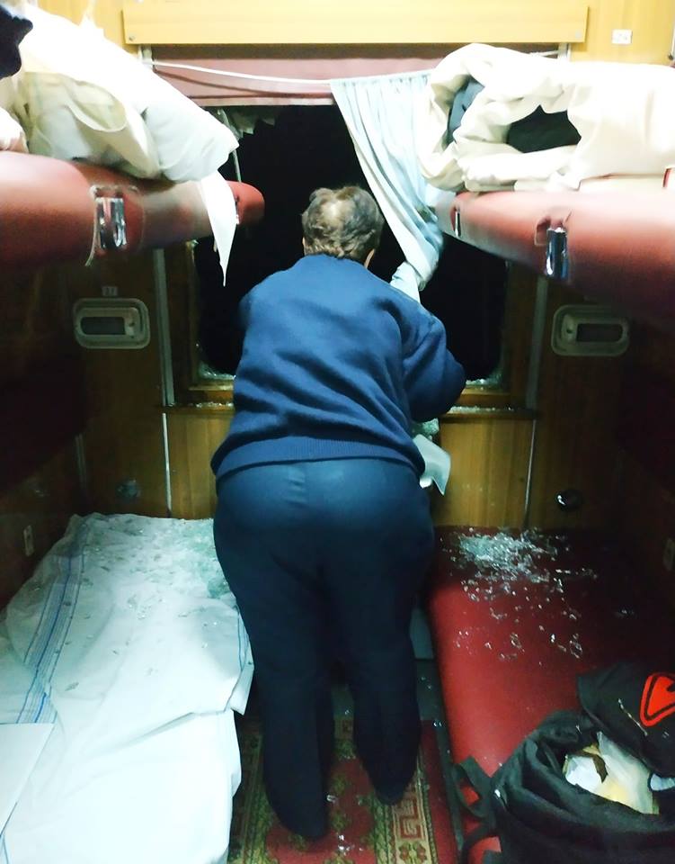 Люди, сидевшие у окна получили резанные раны. Пассажирам ничего не оставалось как ехать с разбитыми окнами в мороз. Людей из купе с разбитыми окнами проводники не спешили переводить в другие купе (якобы не было мест). В местной полиции по факту хулиганства начали расследование.