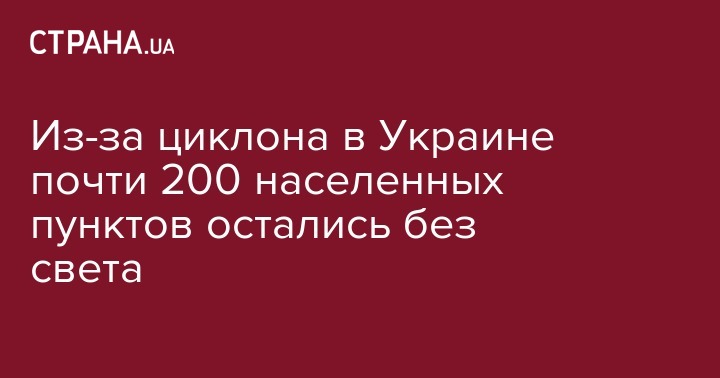 Из-за плохих погодных условий и сильных осадков 12 февраля и в ночь на 13 февраля в Украине 188 населенных пунктов оказались отрезанными от электричества. Об этом свидетельствует информация, размещенная на сайте ГСЧС Украины