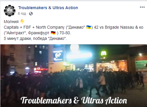 Чуть позже группировка ультрас Динамо сообщила в Facebook об этой драке.