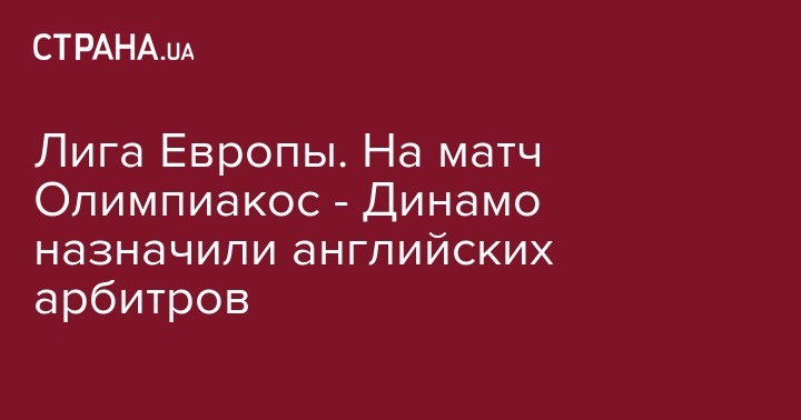 Лига Европы. На матч Олимпиакос - Динамо назначили английских арбитров