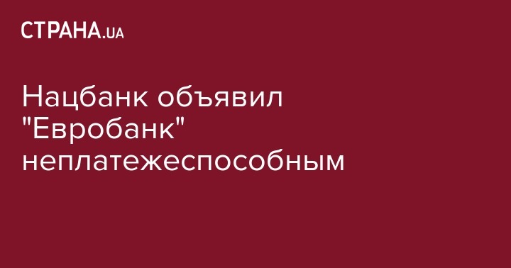 Нацбанк объявил "Евробанк" неплатежеспособным