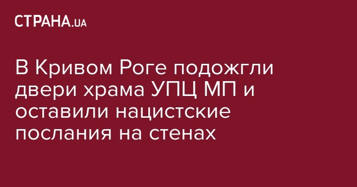 Вечером 15 февраля неизвестные бросили зажигательную смесь в дверь Свято-Вознесенского храма УПЦ МП в Кривом Роге. Об этом сообщает пресс-центр Управления Нацполиции в Кривом Роге на своей странице в Facebook.