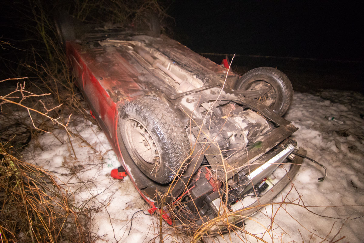 Владелец авто не находился за рулем, так как выпил. По его словам, водитель был абсолютно трезв. Всего в салоне находились трое человек. К счастью, обошлось без серьезных травм. Мужчины смогли самостоятельно покинуть перевернутый автомобиль. По предварительной информации, водителя и пассажира, сидевшего на заднем сидении, госпитализировали с ушибами рук и головы.