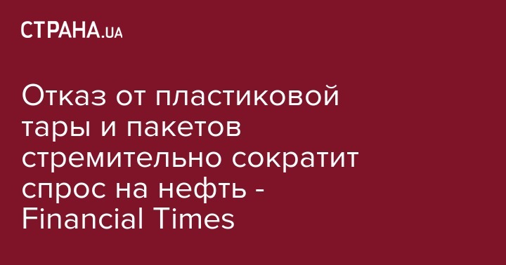 Глобальный тренд по борьбе против пластиковых отходов, а также снижение использования пластиковых пакетов и ряда других видов пластика может существенно снизить спрос на нефть. Об этом сообщает "Европейская правда" со ссылкой на Financial Times.