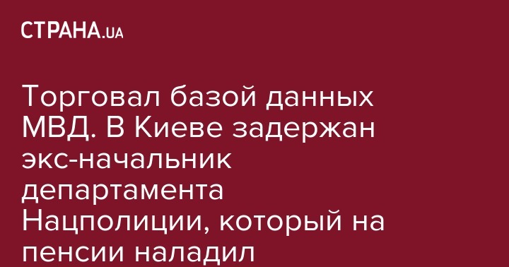 По подозрению в продаже служебной информации из баз данных Министерства внутренних дел в Киеве 20 февраля задержан бывший начальник департамента Национальной полиции