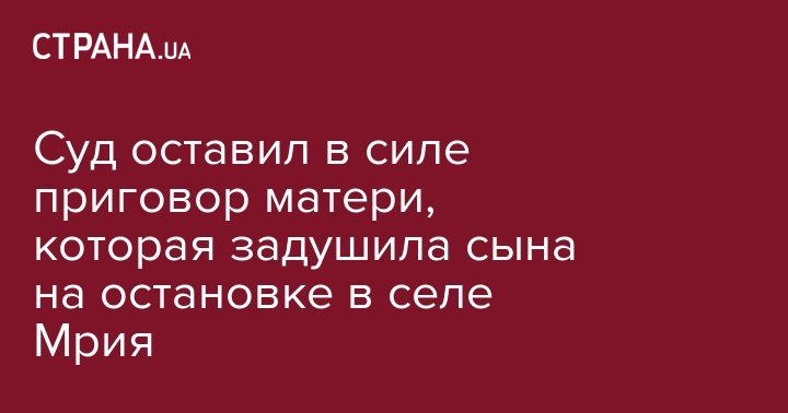 Суд оставил в силе приговор матери, которая задушила сына на остановке в селе Мрия