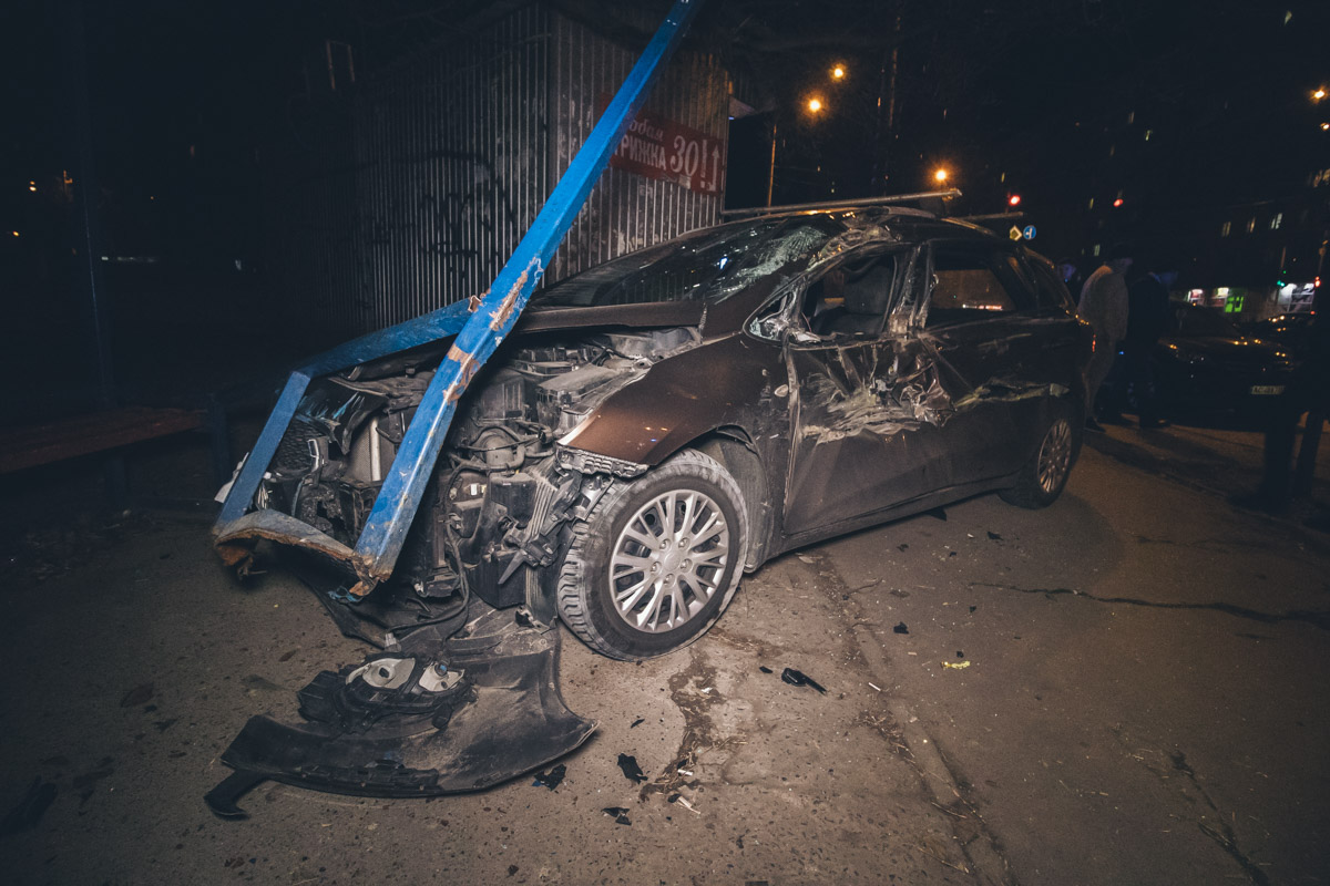 В результате аварии пострадал водитель Kia, ему посекло лицо разбившимся стеклом. Парня госпитализировали в больницу. На момент аварии на остановке не было людей. От столкновения с маршрутным такси и остановкой легковой автомобиль получил серьезные повреждения.