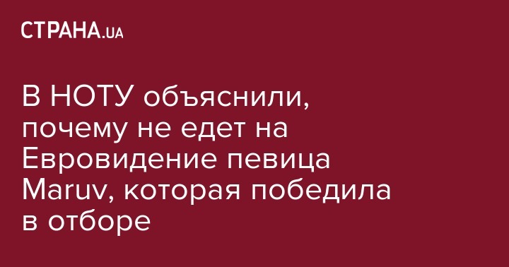 В сообщении указано, что певица Анна Корсун (сценическое имя - MARUV) получила победу в национальном отборе в результате честного конкурса и получила максимальный балл от зрителей. "Однако у исполнителя, который представит Украину на международной арене, также есть обязательства: после подписания договора с ПАО "НОТУ" на время конкурса исполнитель становится культурным амбассадором Украины и доносит не только собственную музыку, но также становится выразителем мнения украинского общества в мире. После проведенных переговоров ПАО "НОТУ" и певица MARUV не нашли общего решения относительно миссии представителя Украины на международном песенном конкурсе", - поясняется в релизе.