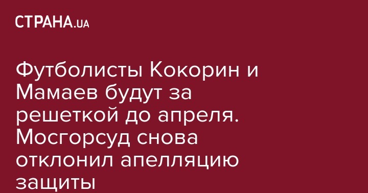 Футболисты Кокорин и Мамаев будут за решеткой до апреля. Мосгорсуд снова отклонил апелляцию защиты