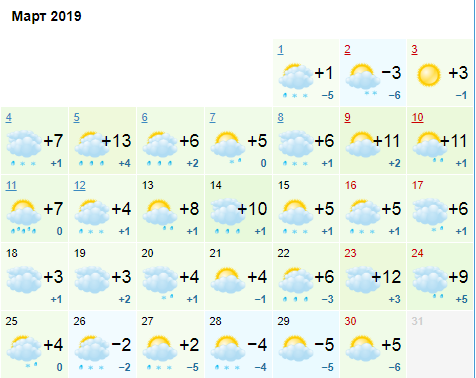 Погода в марте