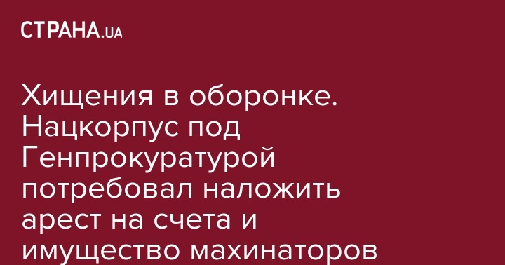 Хищения в оборонке. Нацкорпус под Генпрокуратурой потребовал наложить арест на счета и имущество махинаторов
