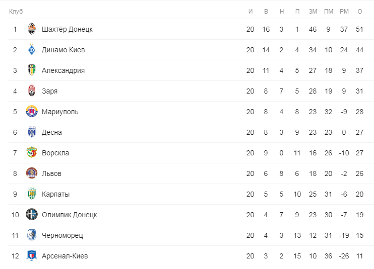 Таким образом, по итогу 20-го тура Чемпионата Украины по футболу, Премьер-лиги турнирная таблица выглядит таким образом: