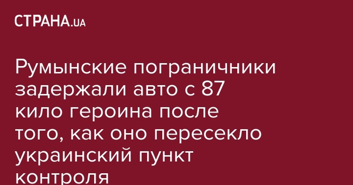 Большую партию героина задержали румынские пограничники в пункте пропуска Солотвино в Закарпатской области. Инцидент произошел утром во вторник, 5 марта. Об этом сообщает  ресурс pershij.com.ua.