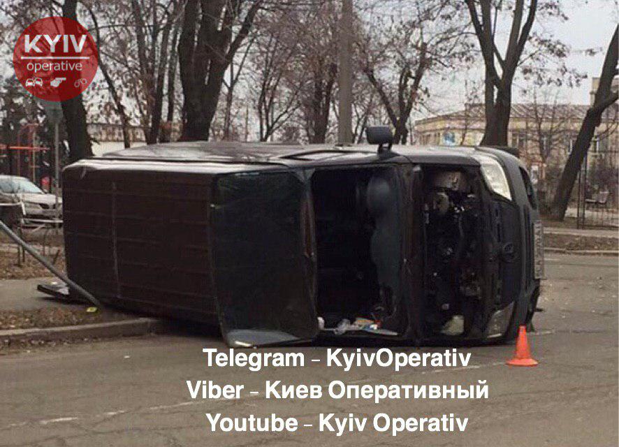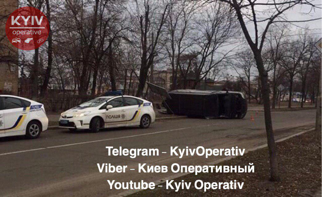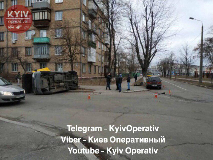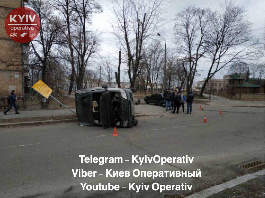 В среду днем, 6 марта, на улице Заслонова в Киеве произошло дорожно-транспортное происшествие, в результате которого автомобиль Mercedes опрокинулся на асфальт. Об этом сообщает на своей странице в социальной сети Facebook "Киев Оперативный".