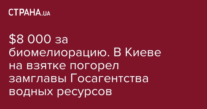 Вчера вечером, 6 марта, в Киеве при получении взятки в $8 000 был задержан заместитель главы Госагентства водных ресурсов Украины.
