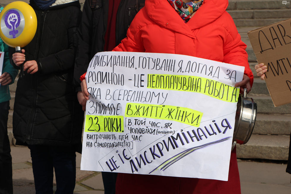 По данным UA: Харків, женщины прошли по центру города с лозунгами "Место женщины везде", "Бунтуй, кохай, права не віддавай", "Не продавайся за цветы - завтра станешь у плиты".