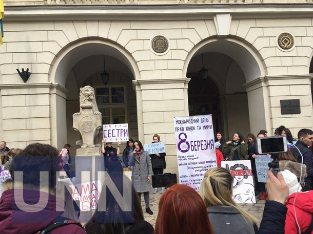 Как сообщает УНН, в центре Львова женщины пришли с плакатами, на которых было написано "Мое тело - мое дело", "Вставай за права женщин" и другие. Кроме женщин, участие в акции принимали и мужчины. При этом в городе состоялось одновременно два митинга: с правой стороны площади Рынок расположились с плакатами борцы за права женщин, слева – девушки-"антифеминистки". Между ними пришлось стоять полиции.