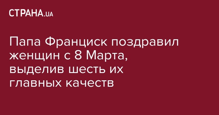 Папа Римский Франциск поздравил всех женщин мира с Международным женским днем. Соответствующая запись появилась на странице понтифика в Twitter в пятницу, 8 марта, на всех девяти языках.
