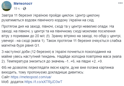 Как сообщала "Страна", синоптики обещают потепление до +18 на этой неделе. 11 марта в Киеве до +9, небольшой дождь и порывы северо-западного ветра.