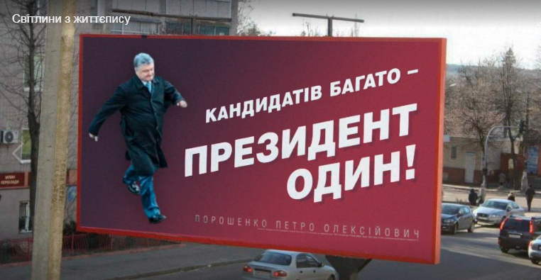 После того как в сети появилась фотография, как 11 марта президент Украины Петр Порошенко убежал со своего митинга с избирателями в Житомире из-за присутствия на мероприятии активистов "Нацкорпуса", снимок не только вызвал бурную волну обсуждений, но и стал основой для множества фотожаб.