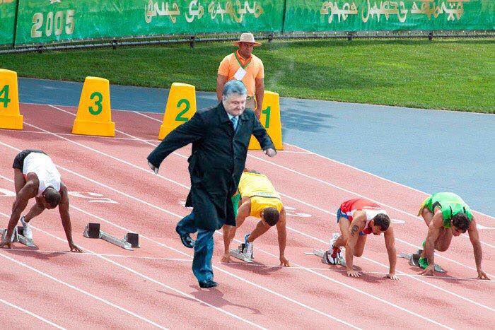 В сети делают фотожабы из фото Порошенко, убегающего с собственного митинга в Житомире