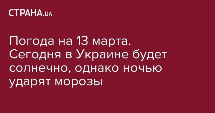 В среду, 13 марта, в Украине будет солнечно, но в то же время и довольно прохладно. Об этом свидетельствует прогноз, размещенный на сайте Укргидрометцентра