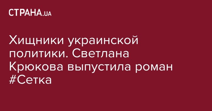 Заместитель главного редактора интернет-газеты "Страна" Светлана Крюкова на днях выпустила свою дебютную книгу "СЕТКА. Хищники против пОрнокопытных". Это первый в Украине художественный роман о подноготной выборов, о технологии подкупа избирателей, описанной на фоне реальной истории выборов в Чернигове летом 2015 года.