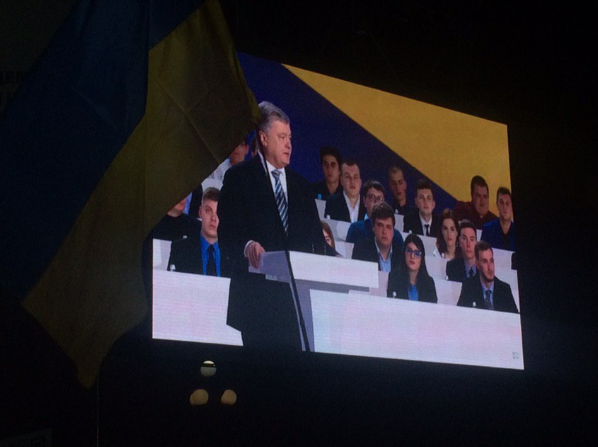 19:08 На экране в Ковеле транслируют запись с форума "От Крут до Брюсселя. Мы идем своим путем", на котором 29 января Петр Порошенко выдвинул себя в президенты.