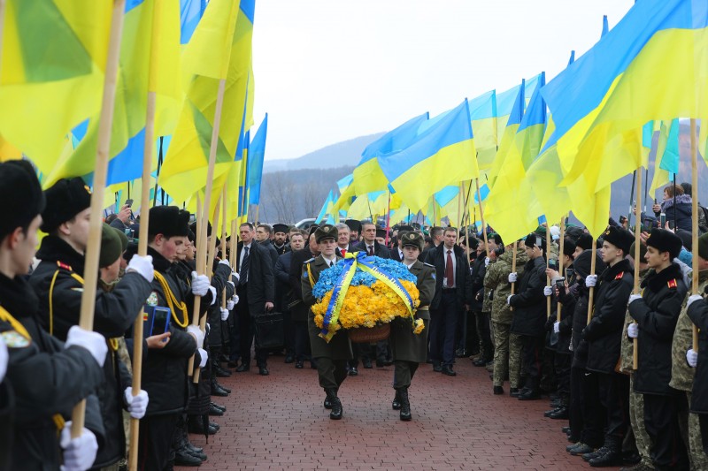 14:20 Пресс-служба президента обнародовало фото из Закарпатской области, где 15 марта он принял участие в мероприятиях по случаю 80-й годовщины провозглашения Карпатской Украины в 1939 году и боя на Красном поле.