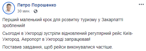 14:06 Аэропорт "Ужгород" после нескольких лет простаивания принял первый самолет. Петр Порошенко принял участие в символическом открытии аэропорта. На Закарпатье возобновили рейс "Киев-Ужгород-Киев".