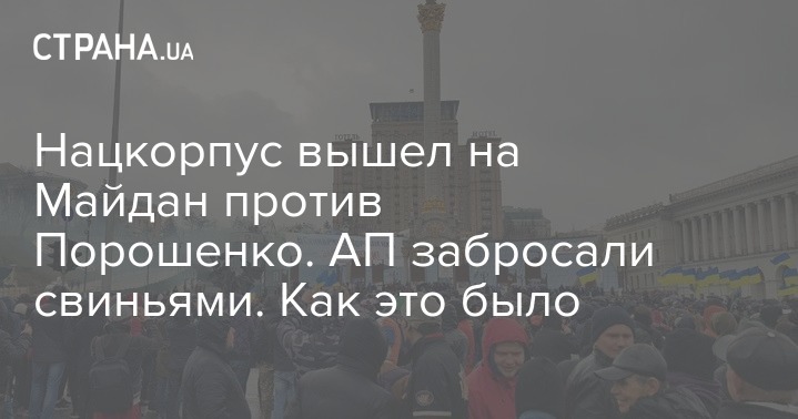 15:43 Параллельно митингу в Киеве, активисты Нацкорпуса забросали свиньями визит Порошенко в Полтаву. За это их заломала полиция. Вот видео инцидента: