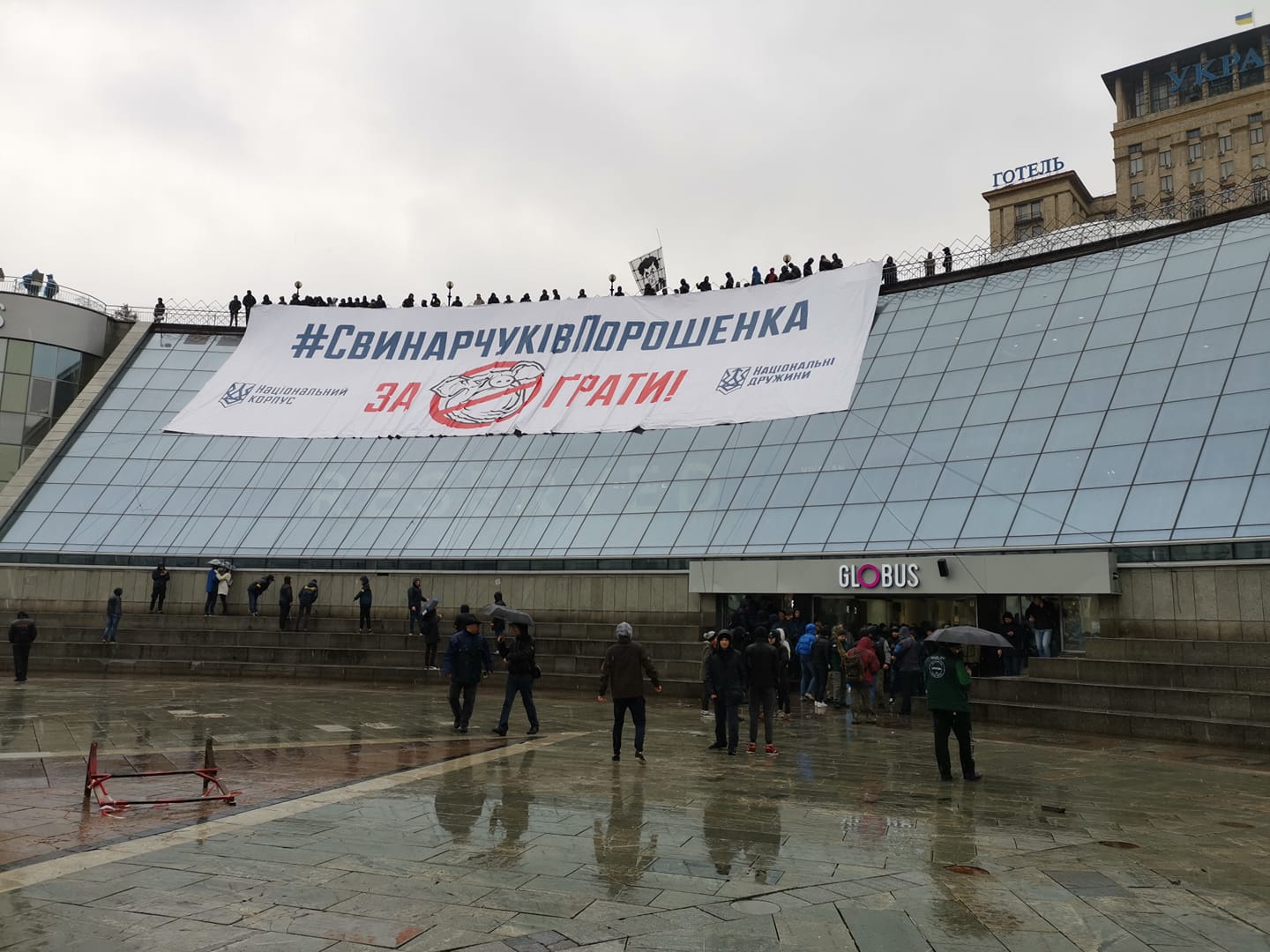 12:41 На Майдане уже растянули баннер "Свинарчуков Порошенко - за решетку!".