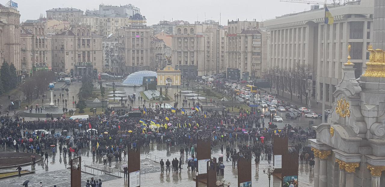 12:43 В центре Киева собралось более десяти тысяч человек - по большей части в камуфляжной форме "Нацкорпуса" и возраста 17-23 года. Все пришли с требованием расследования скандала в Укроборонпроме. Скандируют уже известный лозунг "Де вiдрубанi руки?" И "за грати".