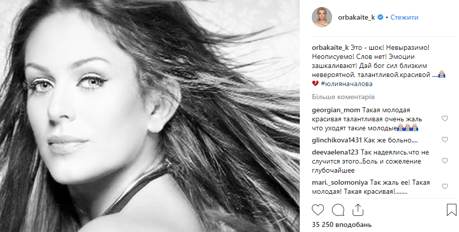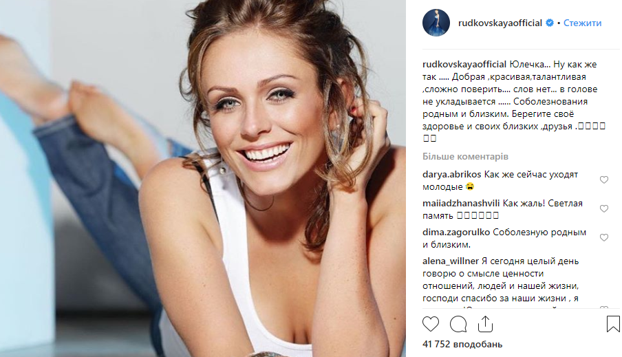 "Юлечка... Ну как же так... Добрая, красивая,талантливая, сложно поверить... Слов нет... в голове не укладывается... Соболезнования родным и близким...",- написала в сети она.