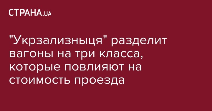 Украинская компания "Укрзализныця", которая в конце марта запустит поезд "Житомир-Одесса", в этом году собирается разделить вагоны поездов на классы: "комфорт", "стандарт" и "эконом", по которым будут формироваться цены на проезд. Об этом сообщает пресс-служба УЗ на своей странице в Facebook.