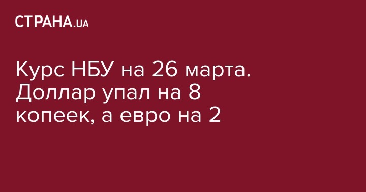 Курс НБУ на 26 марта. Доллар упал на 8 копеек, а евро на 2